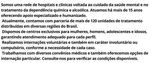 • Equipe Multidisciplinar: Contamos com uma equipe de profissionais especializados, incluindo médicos, enfermeiros, fisioterapeutas e nutricionistas, que oferecem cuidados personalizados e acompanhamento constante.